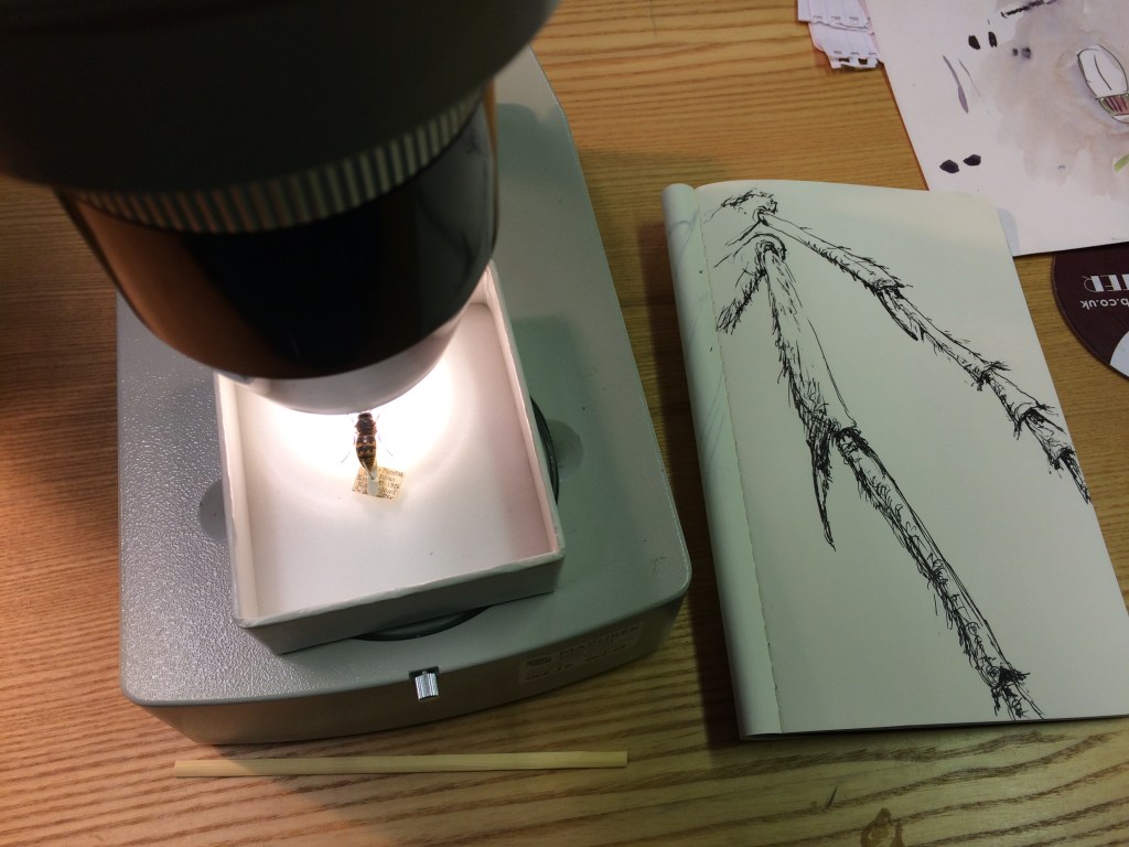 Holding the insects while drawing them outside was a great alternative to drawing dead insects under the microscope. This reiterated my ideas of continuing to investigate how touch could be used in the gallery space for audience participation.