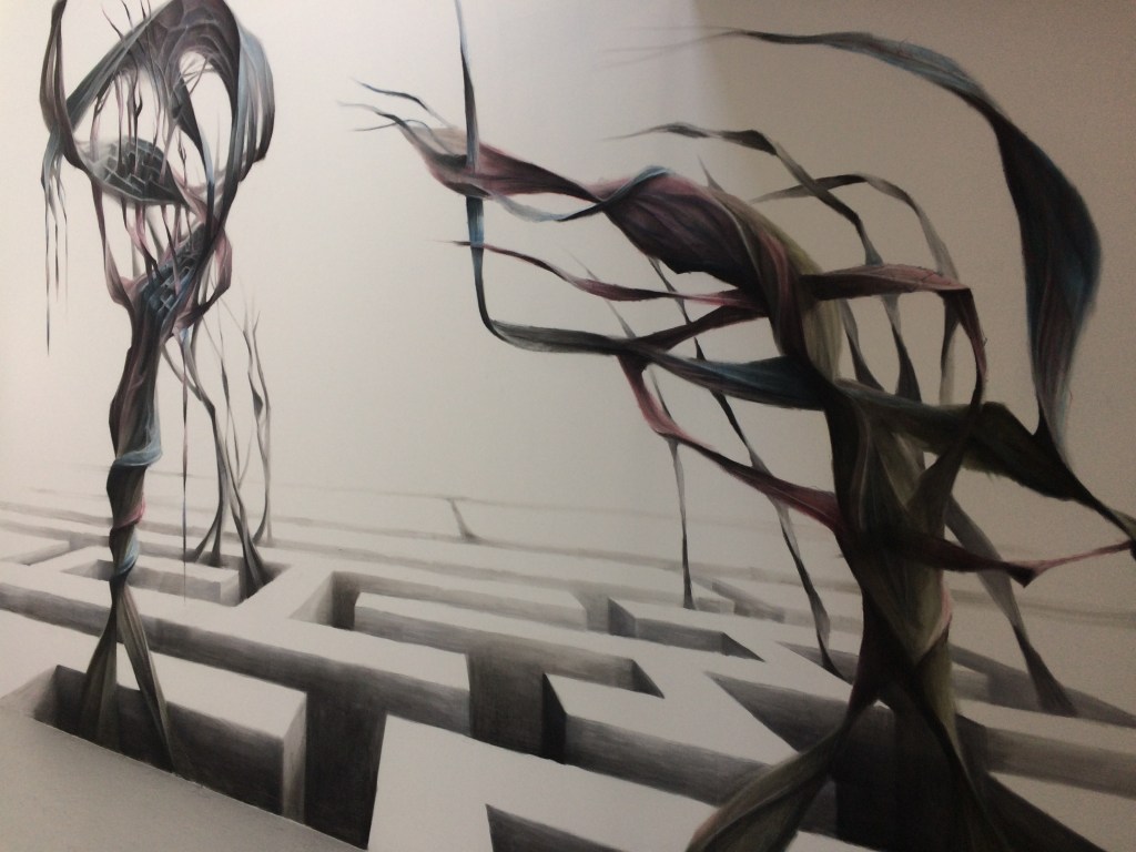 The exhibition followed the traditional display of drawings hung on the wall which the viewer gazes at trying to visually find meaning.